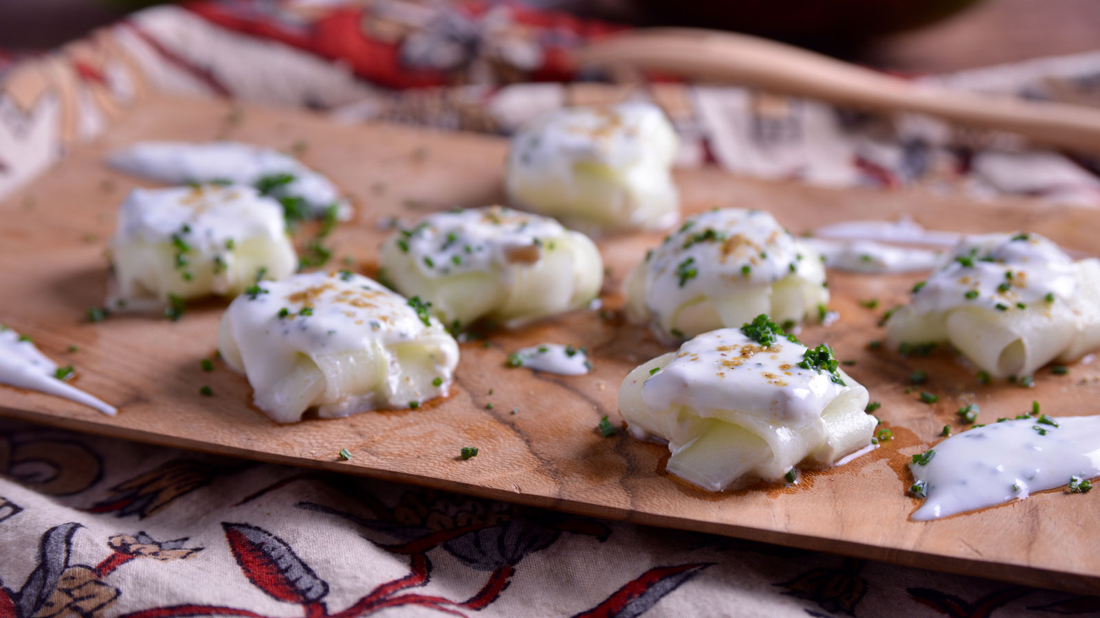 Picamos un poco de cebollino fresco y decoramos la superficie de nuestros raviolis.