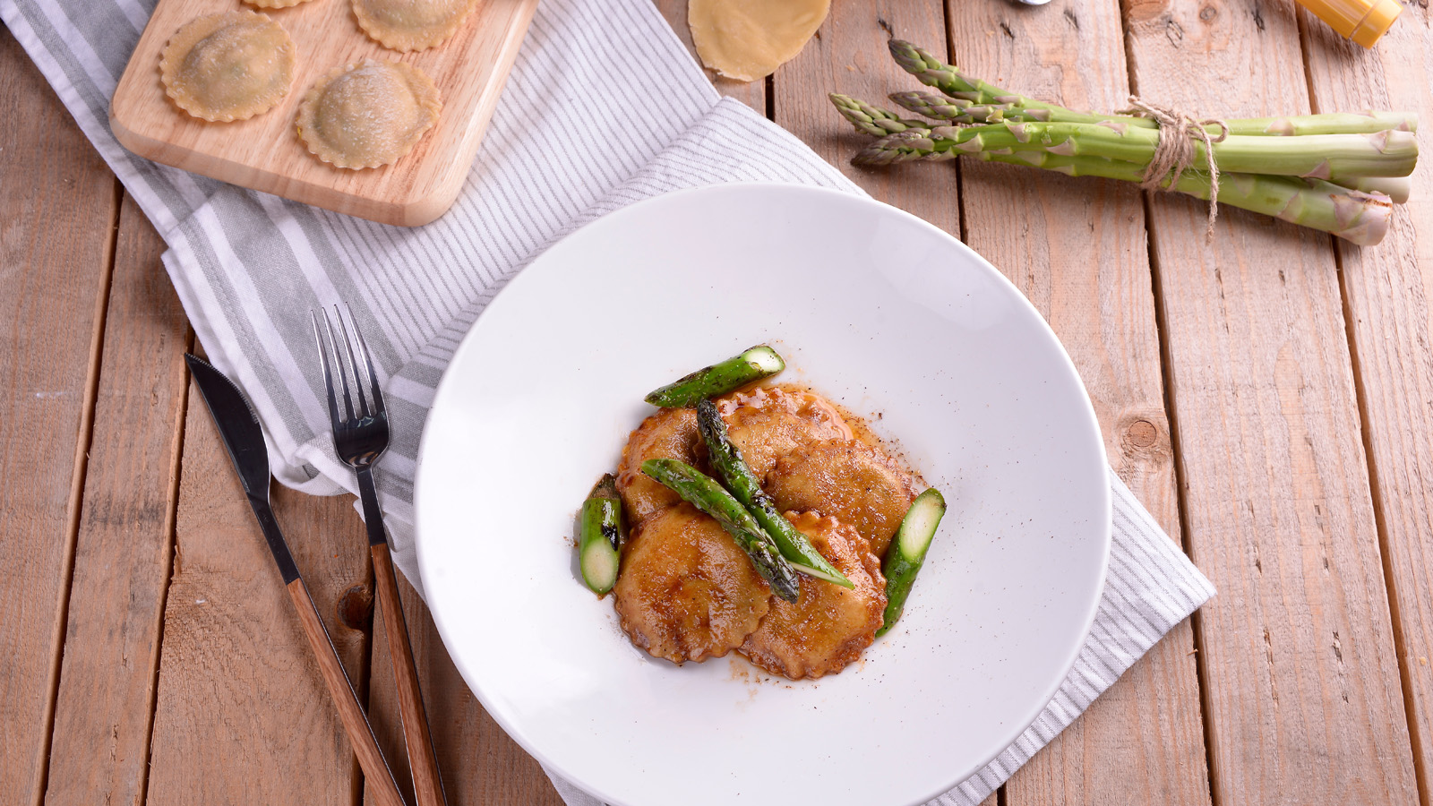 Cortamos los raviolis con un cuchillo y sellamos los bordes con un tenedor.