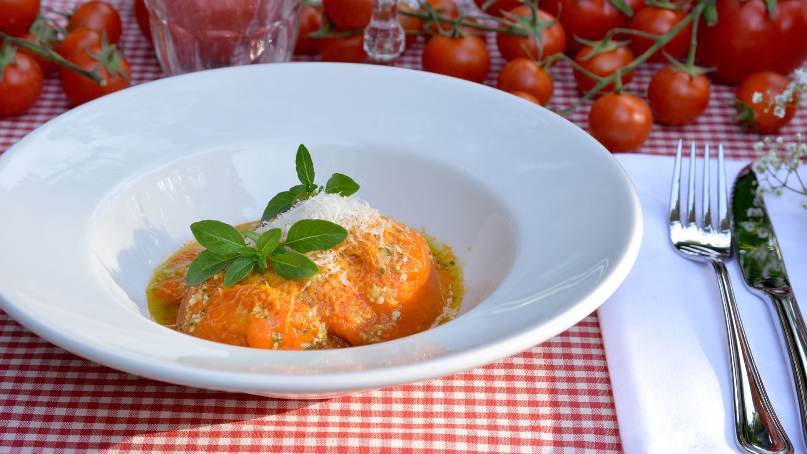 En el capítulo 22 del programa de televisión Cenas al aire libre, el cocinero argentino Pablo Vicari prepara una receta de Raviolis caseros de ricotta con salsa tuco para una cena italiana.