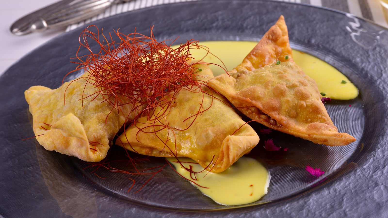 En una sartén con aceite caliente freímos la pasta, cuando esté lista la retiramos y salteamos en la nata con azafrán.