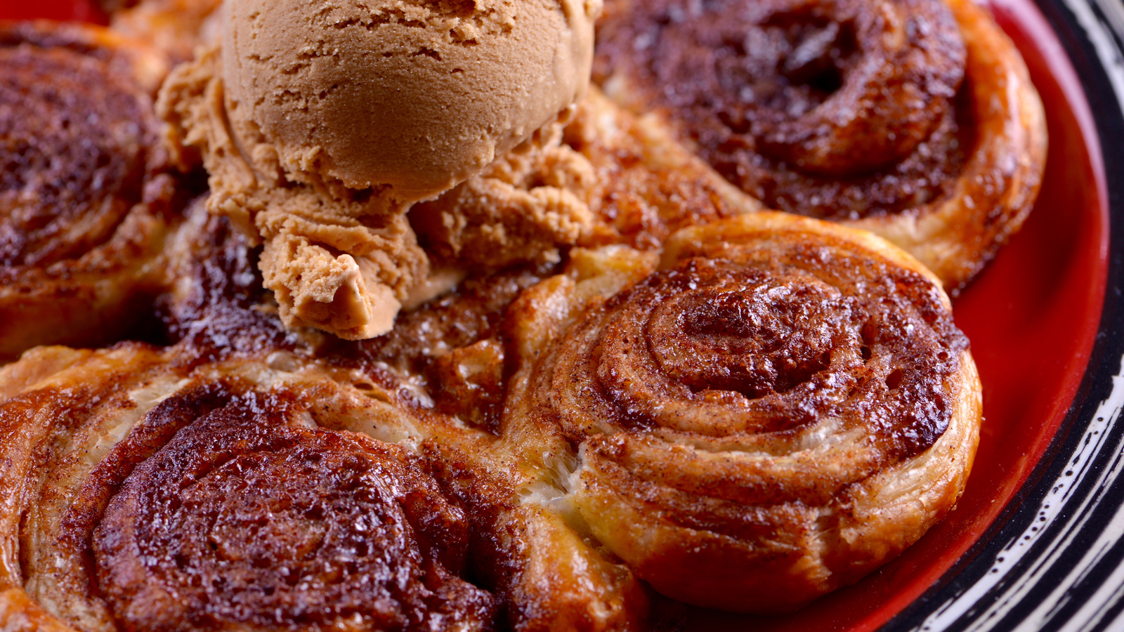 En el capítulo 522 del programa de televisión Los 22 minutos de Julius T4, Julius - Julio Bienert prepara la receta de Rollitos hojaldrados de canela.