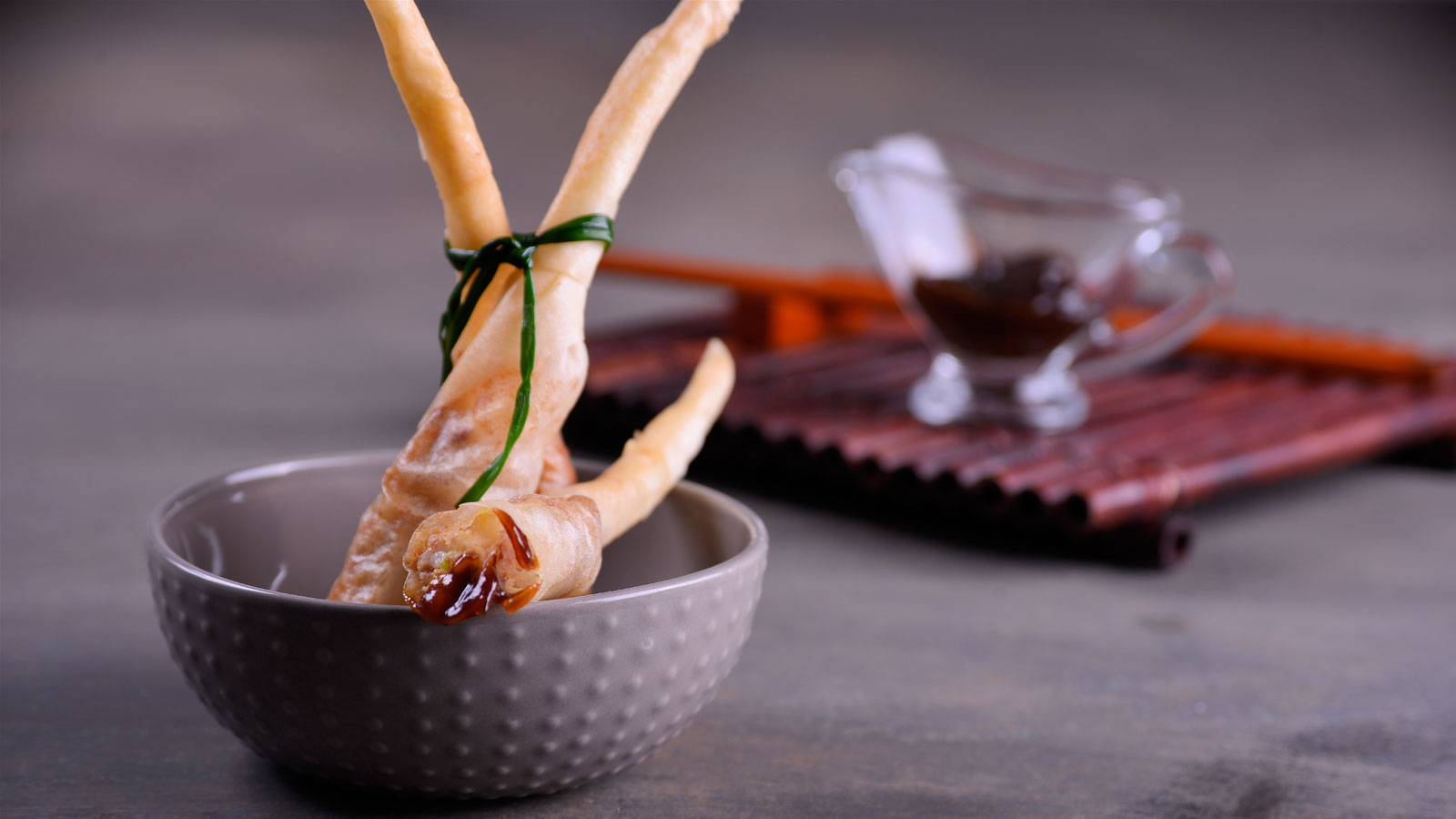Servimos los rollitos con la salsa Hoisin.