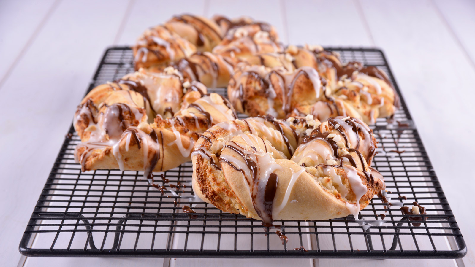 Una vez que las rosquillas estén frías, vertemos el glaseado y el chocolate fundido creando hilos y servimos.