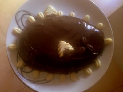 Ponemos el bizcocho sobre una rejilla y un plato debajo para que recoja el chocolate que vaya cayendo. Cuando la cobertura haya tomado un poco de consistencia, lo vamos vertiendo despacio sobre la tarta, dejando que se extienda sobre la misma. Una vez frío lo metemos la nevera, pero tapado, y luego decorar al gusto.