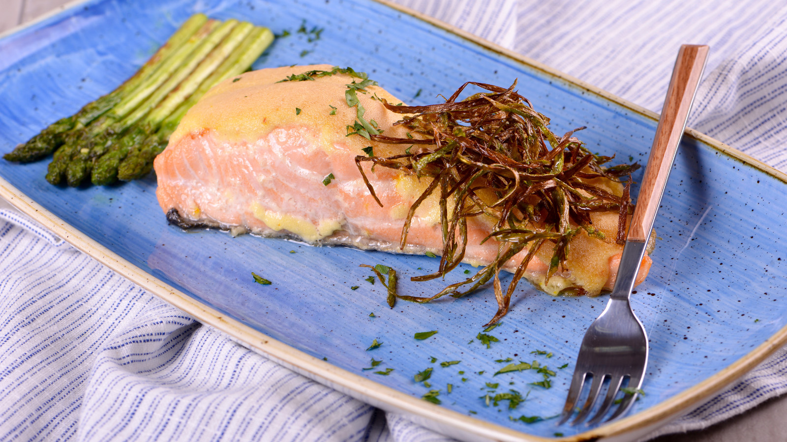 Salmón con costra de azafrán