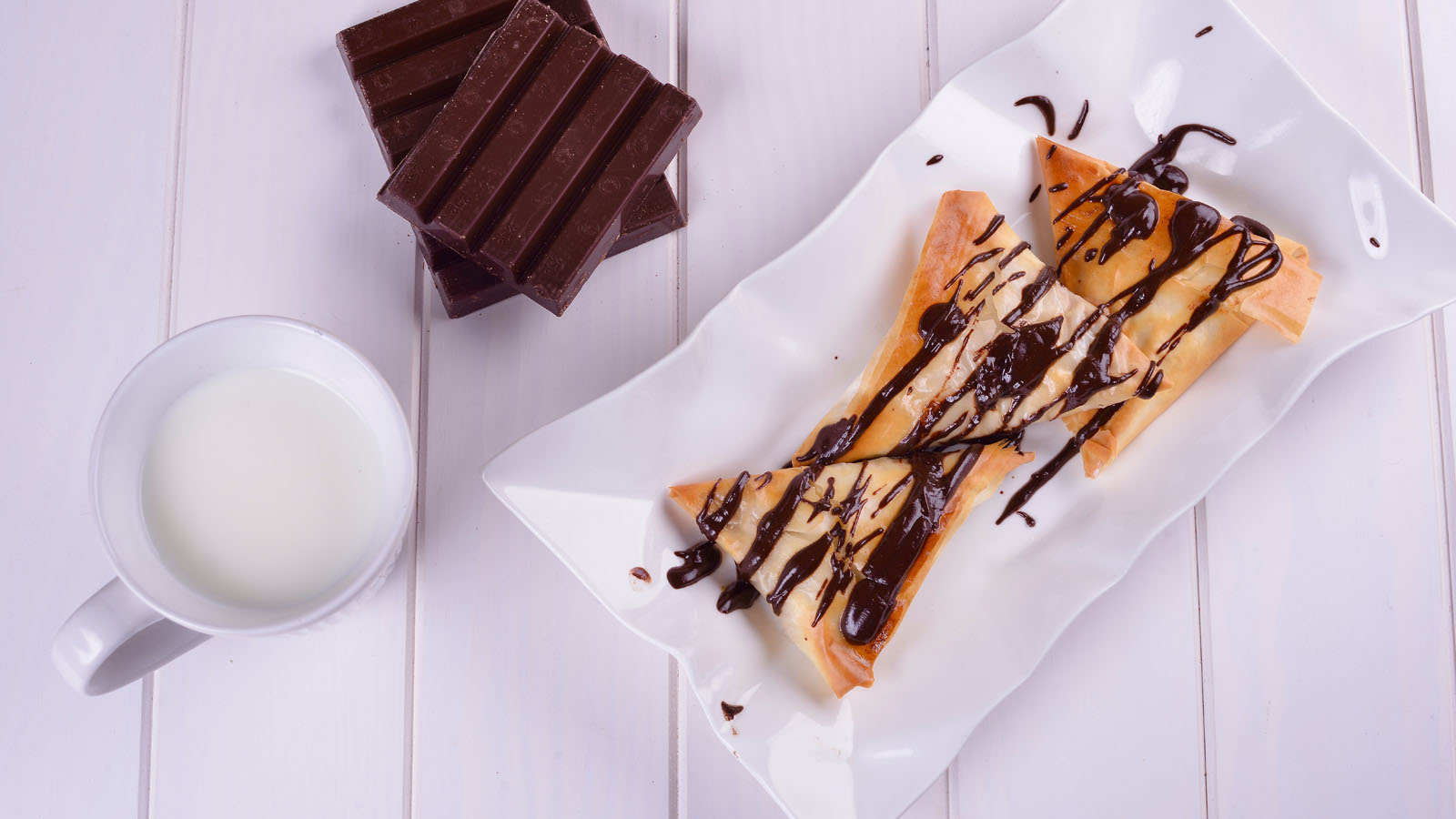 Samosas crujientes de queso y chocolate