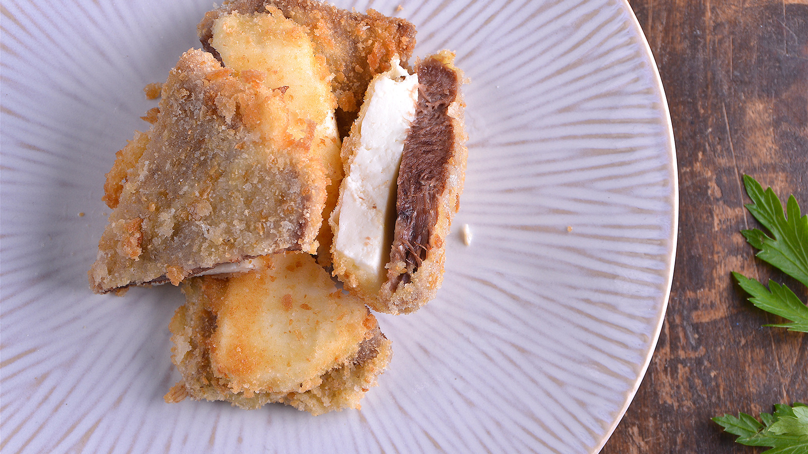 Pasamos por harina, huevo batido y pan rallado. Freímos en abundante aceite caliente y reservamos sobre papel de cocina para evitar el exceso de grasa.