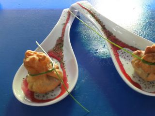 - PELAMOS LOS LANGOSTINOS, LOS PONEMOS A FREIR CON LOS 5 DIENTES DE AJO PREVIAMENTE CORTADO,AÑADIMOS 3 CUCHARADAS DE COÑAC Y DEJAMOS QUE SE HAGAN.(LOS DEJAMOS ENFRIAR)TROCEAMOS LOS 10 LANGOSTINOS AÑADIMOS LAS 10 HOJAS DE ALBAHACA TROCEADAS Y AÑADIMOS LA MERMELADA DE ARANDANOS.