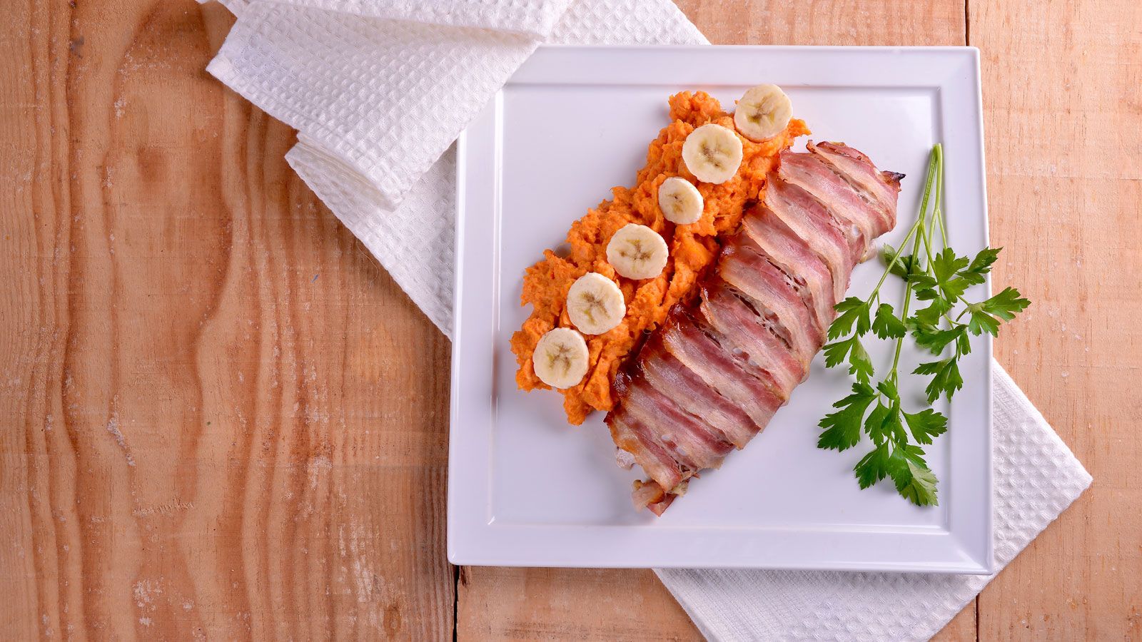 Solomillo de cerdo con plátano y bacón