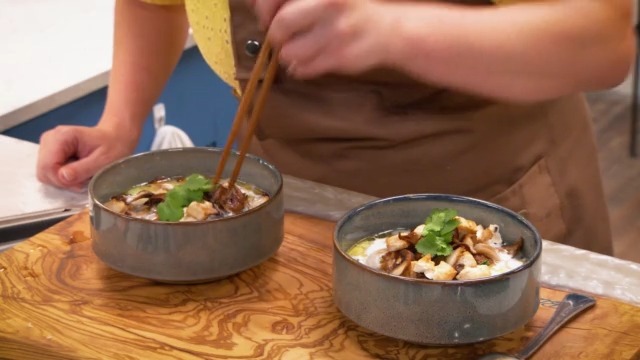 En el capítulo 3 del programa de televisión Blanca cocina con Air Fryer, Blanca Mayandía prepara la receta de Sopa asiática con setas y fideos.