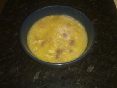 Y por último cuando esté hirviendo la sopa echar un huevo, sal y dar vueltas para el que huevo se mezcle con la sopa. Dejar hervir unos 7 minutos y listo para servir.