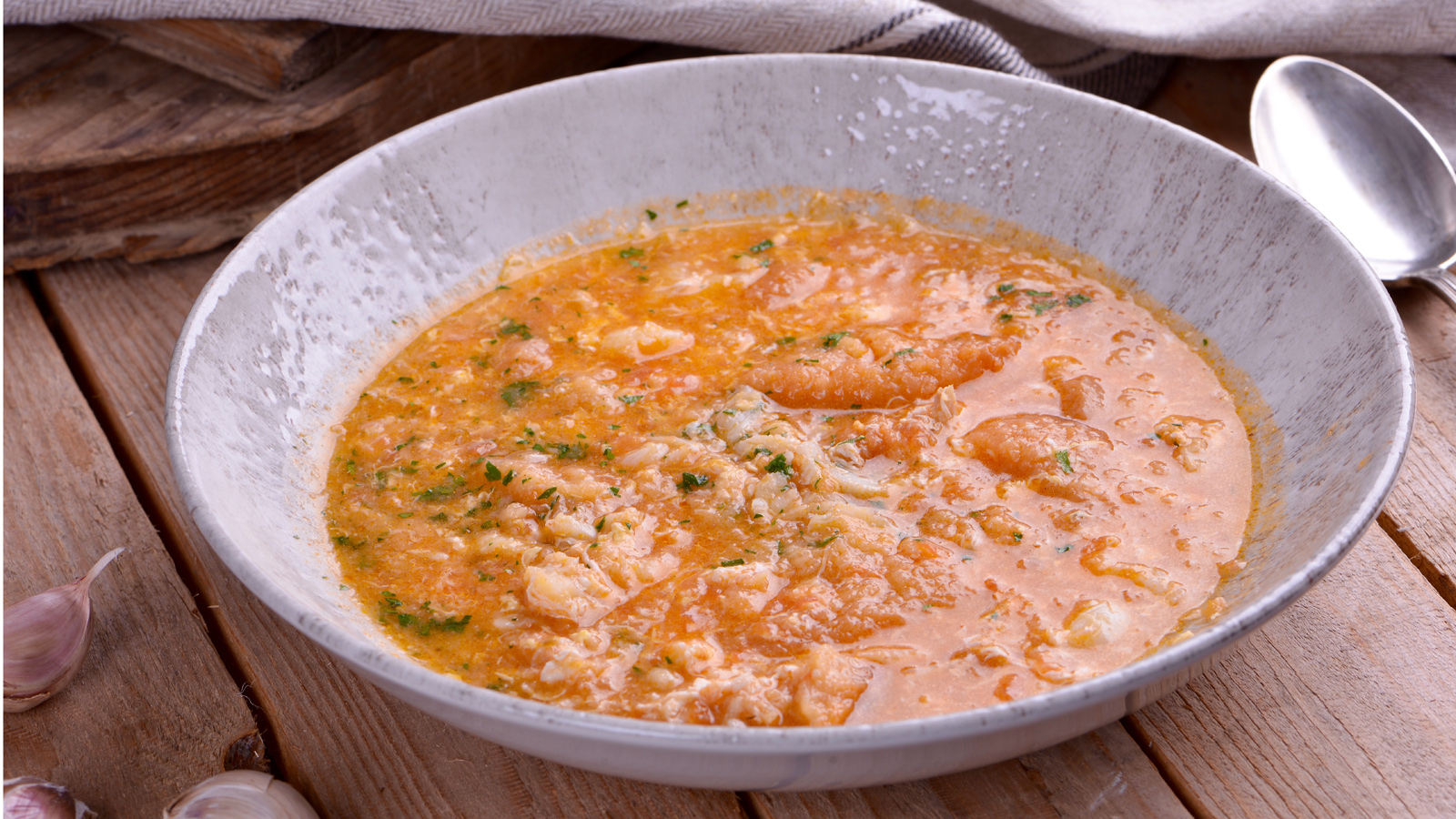 En el capítulo 72 del programa de televisión Sabor de Hogar T4, Juan Pozuelo prepara la receta de Sopa de bacalao a la donostiarra.