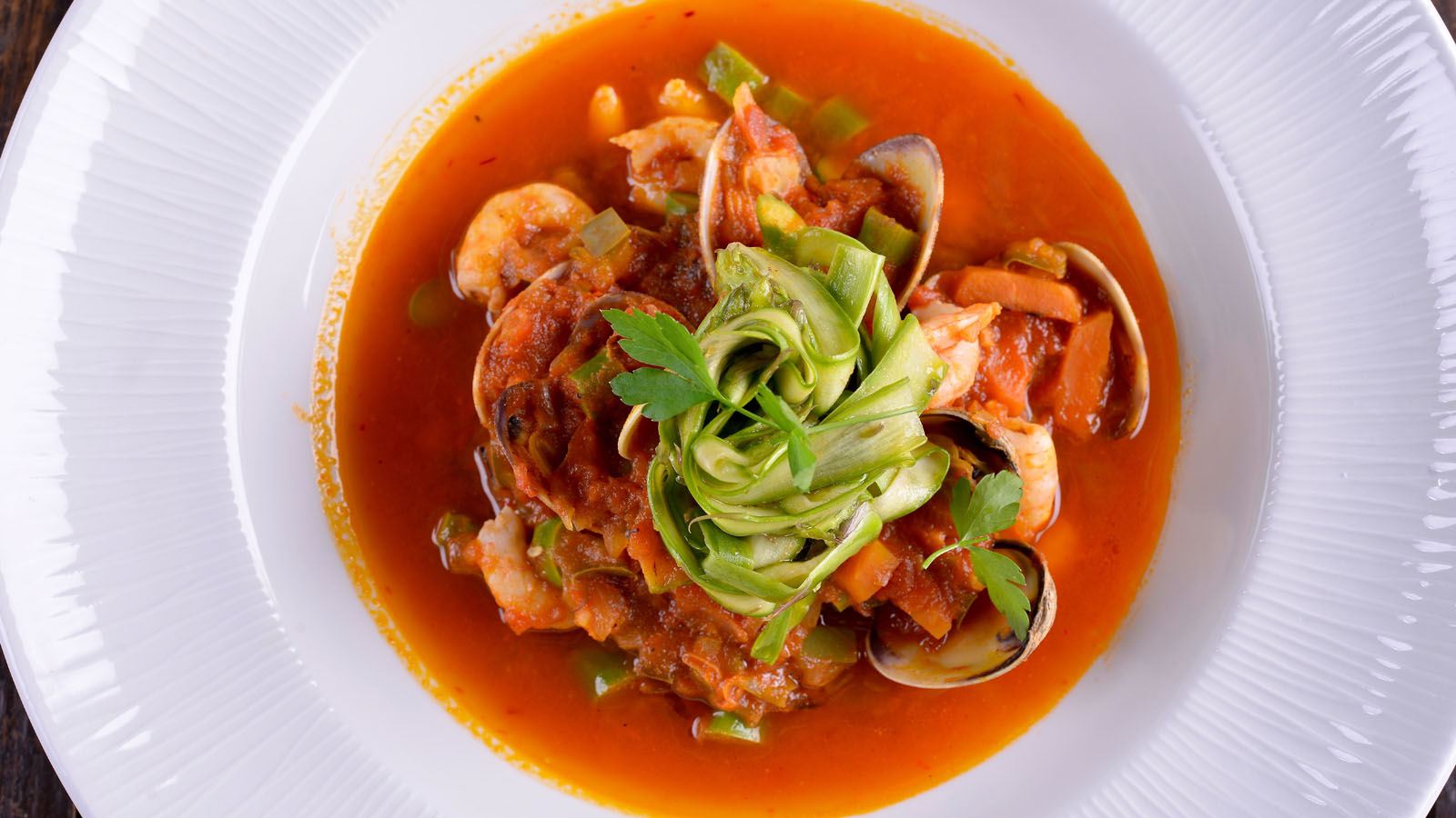 En el capítulo 538 del programa de televisión Cocinamos contigo T2, nuestro cocinero Sergio Fernández prepara la receta que le propone Estefanía López desde Málaga: Sopa de espárragos, almejas y gambas.