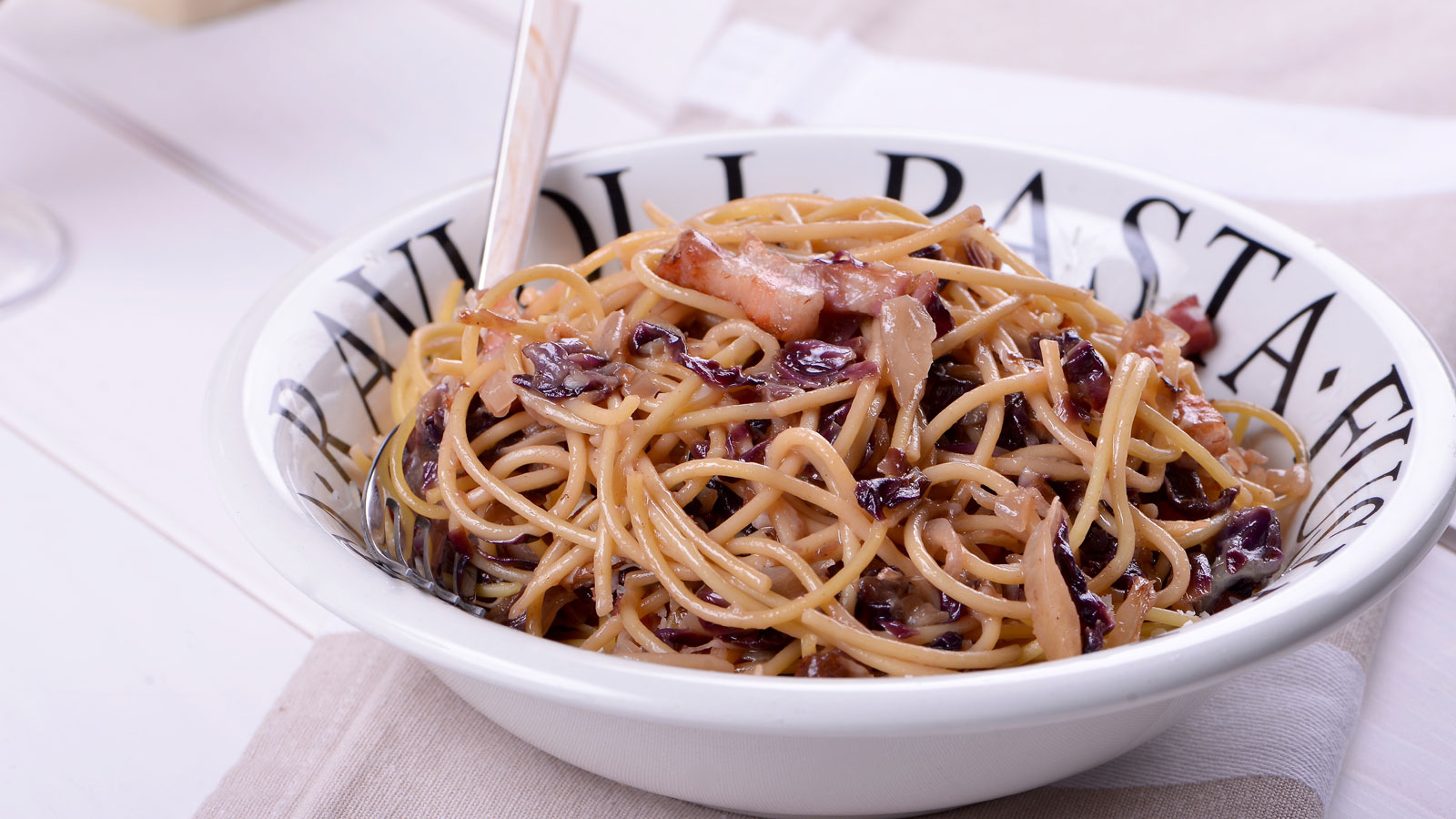 Spaguetti con panceta y radicchio