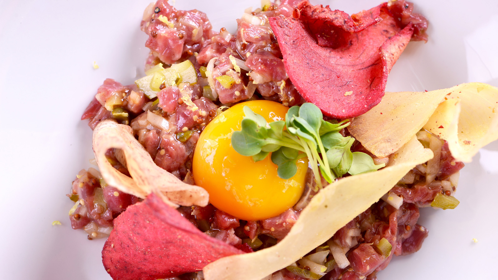 En el capítulo 609 del programa de televisión Cocinamos contigo T4, Sergio Fernández prepara la receta de Steak tartar de potro.