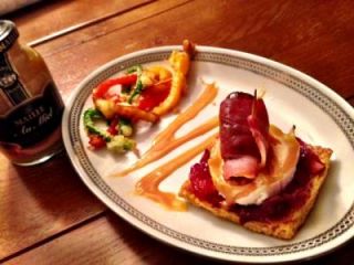 Poner una cantidad abundante de cebolla caramelizada con manzana sobre la tosta, añadir encima de la mezcla, la rodaja de queso de cabra y sobre ésta poner una capa generosa de mostaza Maille.