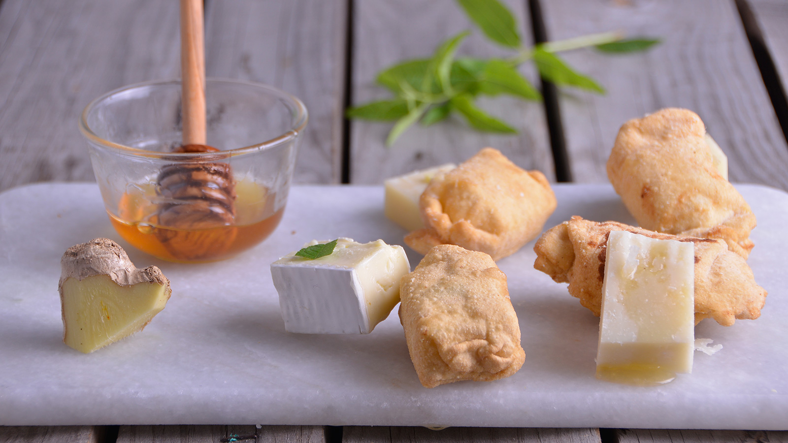 Taquitos de quesos variados con aromas fritos en pasta fresca