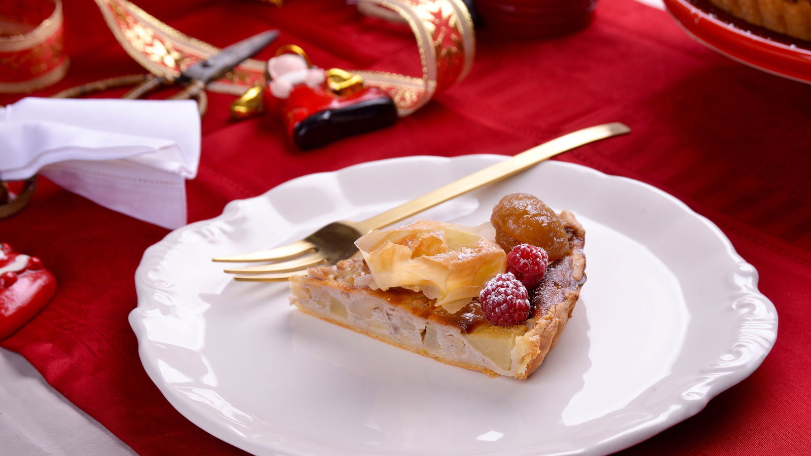 Tarta crujiente de peras y castañas