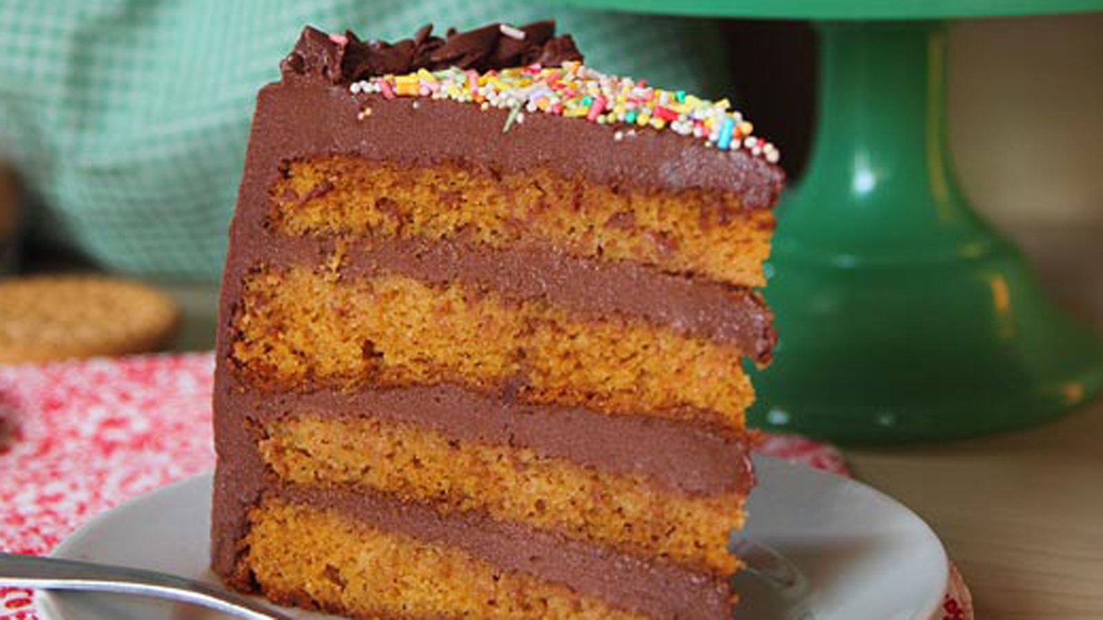 Para terminar, cubrimos la tarta con una buena capa de ganache y decoramos al gusto con la manga pastelera y con confeti de colores.