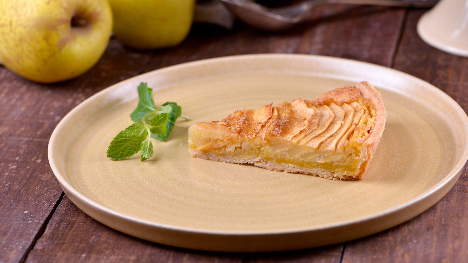 En el capítulo 26 del programa de televisión Postres caseros T2, Amanda Laporte prepara la receta de Tarta de manzana francesa.