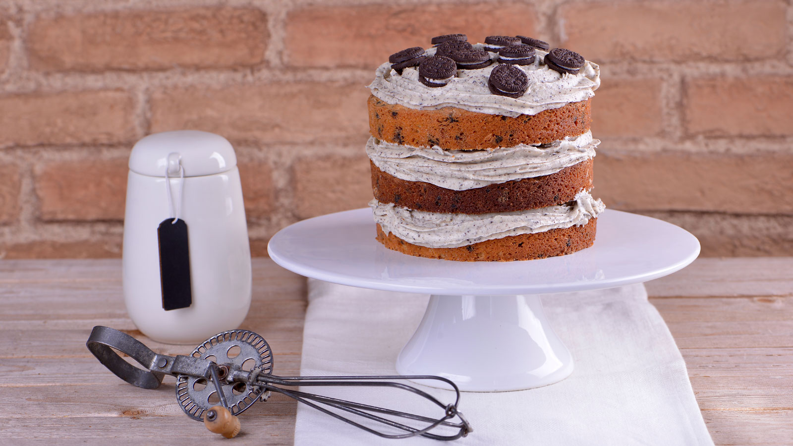 Decoramos la tarta espolvoreando polvo de galletas tipo oreo y mini galletas enteras tipo oreo.