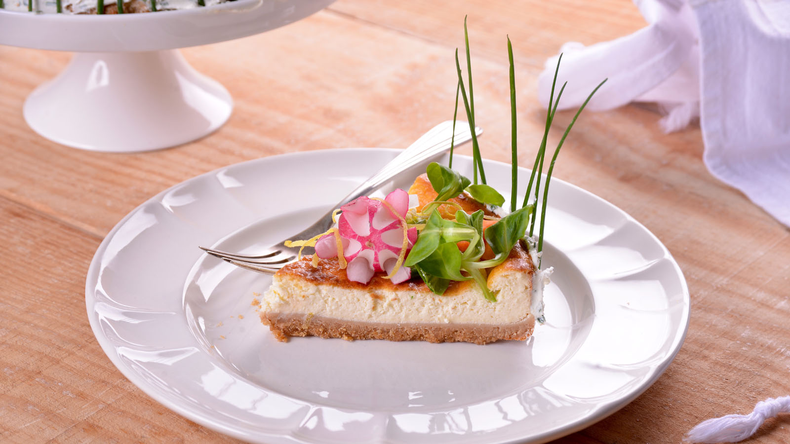 En el capítulo 71 del programa de televisión Cocina de familia T4, la cocinera Elena Aymerich prepara una receta de Tarta de queso salada y florida.