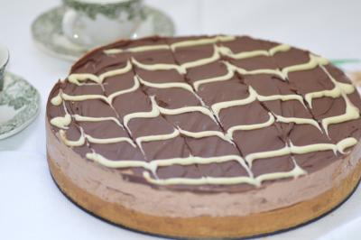 Tarta de queso y chocolate sobre galleta (chocolate cheesecake with white chocolate icing )