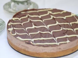 Tarta de queso y chocolate sobre galleta (chocolate cheesecake with white chocolate icing )