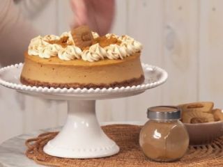 Para preparar la crema de decoración, bate el queso con la crema de speculoos y el azúcar. Incorpora la nata y bate hasta que se airee y esté bien cremosa.