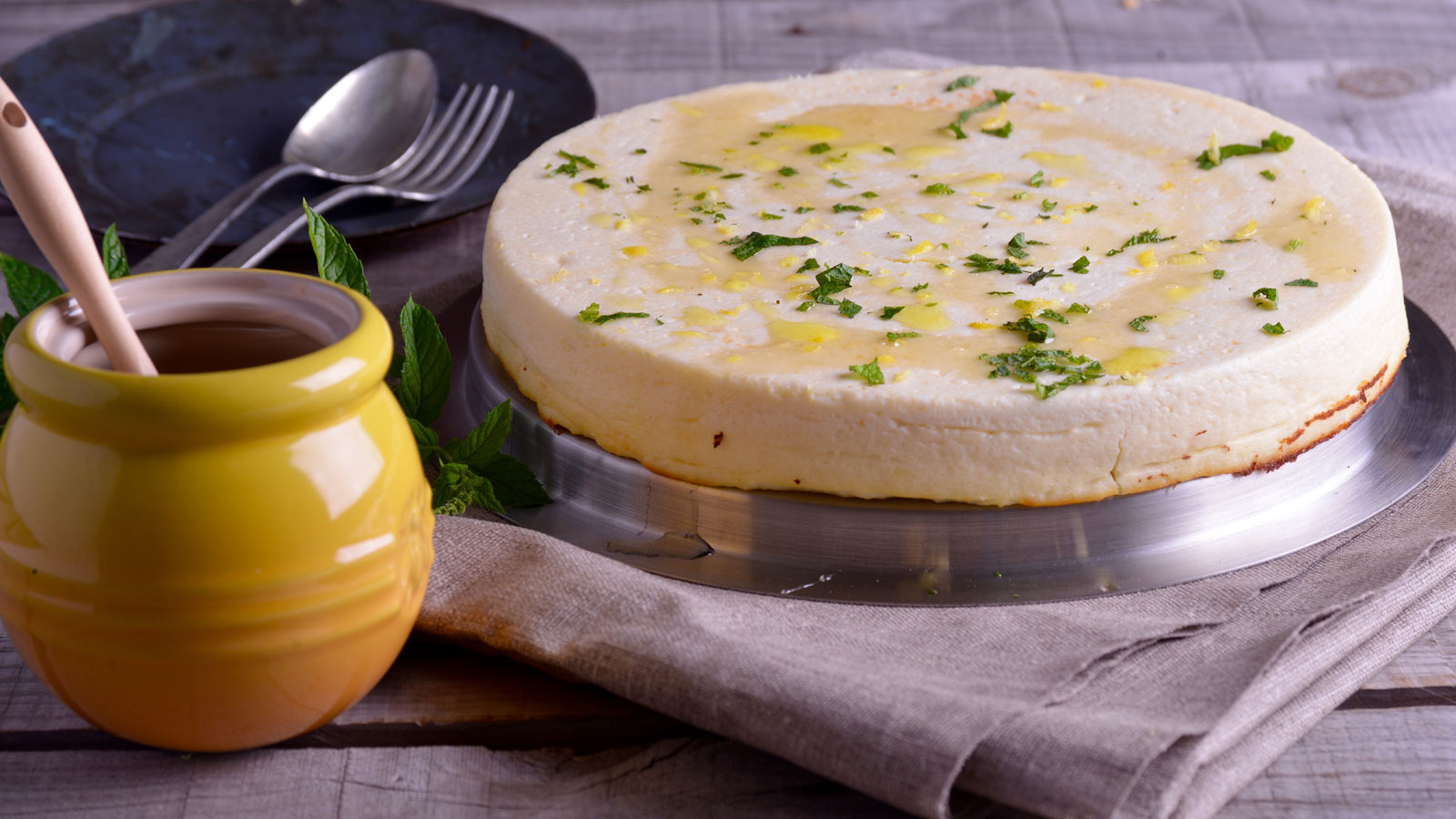 Cubrimos el molde con la mezcla de las yemas, las claras, la ricotta y la ralladura de limón y lo pasamos al horno.
