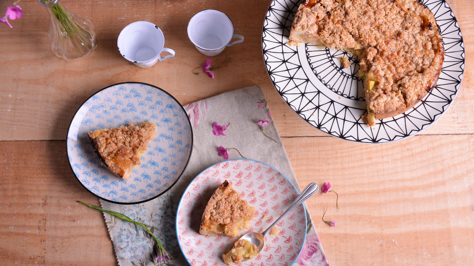 Tarta de ruibarbos con crumble de avena