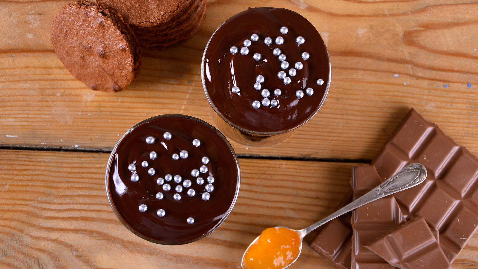 En nuestros vasitos, alternamos capas de bizcocho, mermelada y ganache hasta llenar el vaso. Decoramos con más ganache y perlas de azúcar.
