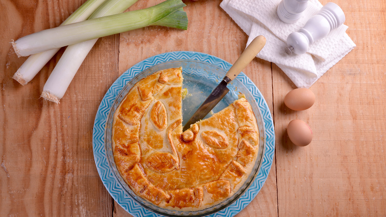 Tarta salada de puerros