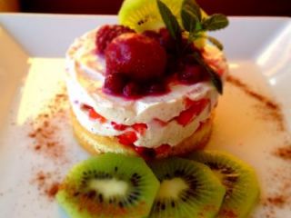 -pondremos frutos rojos escurridos encima de la crema y adornaremos con un kiwi cortado a rodajas alrrededor.