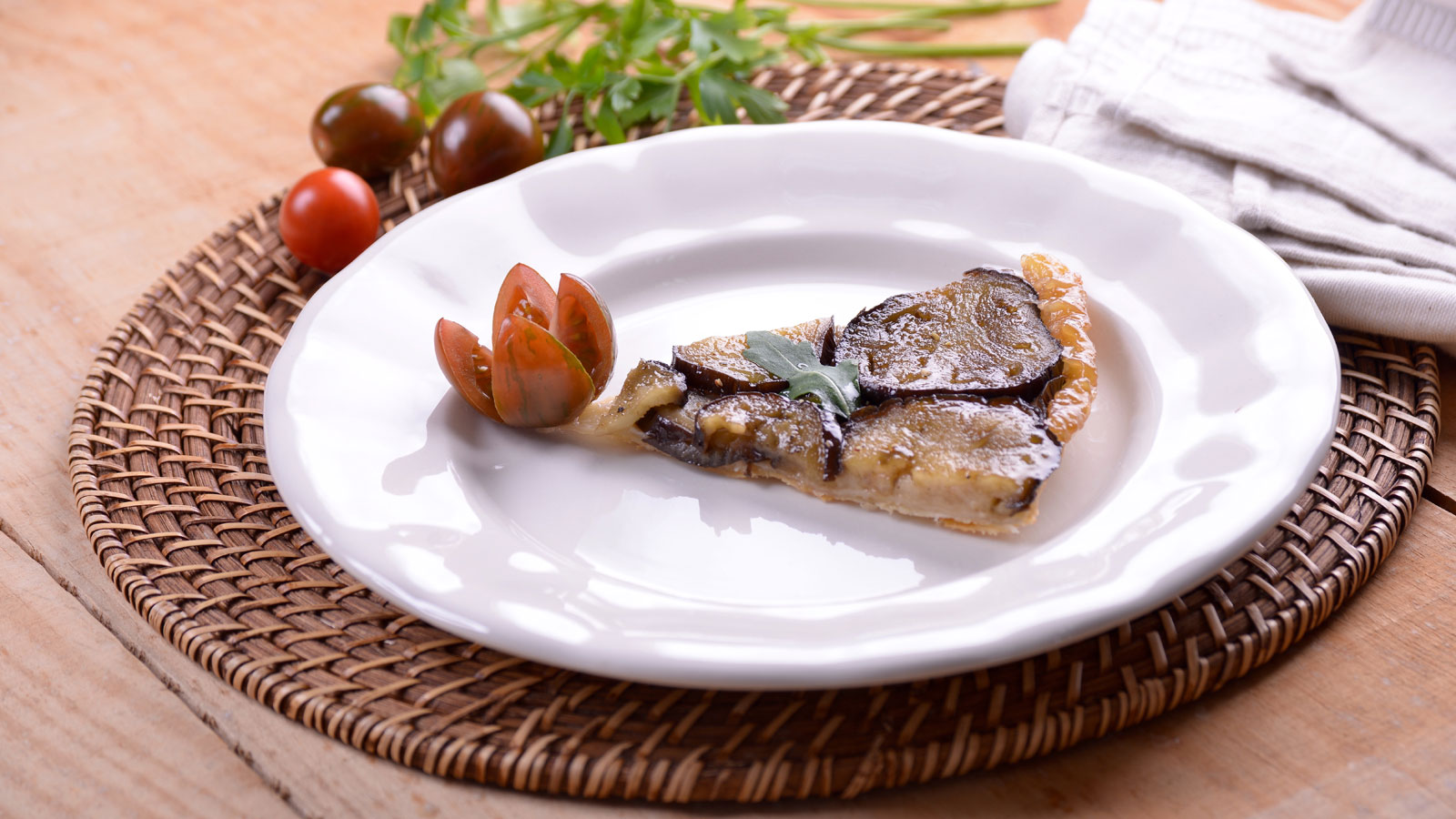 Tarta tatin de berenjenas, hojaldre y miel