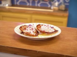 Pela las peras, quita el corazón y córtalas en láminas muy finas. Dispón un montoncito de caramelos violetas triturados (que puedes sustituir por azúcar) en el centro del papel de la airfryer. Coloca las láminas de pera en círculo superpuestas (puedes marcarlo previamente para no salirte) del montón de caramelos. Deben quedar bien ordenadas porque serán la parte visible al darle la vuelta. Cubre las peras con la lámina de hojaldre, empanadilla o masa quebrada, apretando bien los bordes como metiendo la masa alrededor de la fruta. Pincha la superficie de la masa con un tenedor para que salga el vapor durante la cocción. Precalienta la airfryer a 180 ºC durante 3–5 minutos. Coloca el papel con las tartas dentro y cocina a 180 ºC durante unos 20–25 minutos, hasta que la masa esté bien dorada y el caramelo burbujee ligeramente por los bordes. Deja reposar la tatín 5 minutos, para que el caramelo se asiente un poco. Dales la vuelta de pera. Sirve templada, con la nata montada mezclada con el mascarpone y endulzada con caramelos de violeta pulverizados.