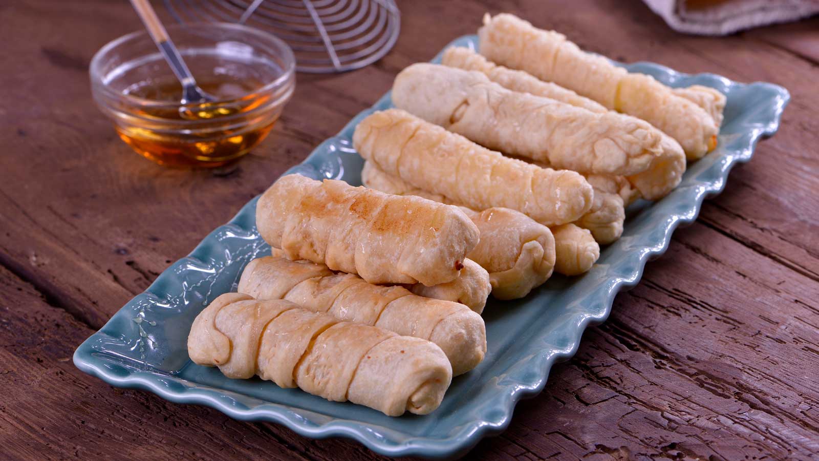 En el capítulo 20 del programa de televisión Masas saladas, Rocío Arroyo prepara la receta de Tequeños acompañados de miel.