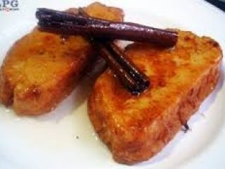 Por último sirva las torrejas con la melaza o jarabe del piloncillo en un plato, colocando dos porciones por plato acompañándolas con rebanadas de fruta, yo elegí manzana.