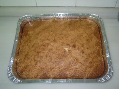 Se vierte la mezcla con ayuda de una lengua de gato y derramandola siempre en el centro de la bandeja. Se esparce azucar por enciama de la preparacion y se coloca al horno.eme por encima,