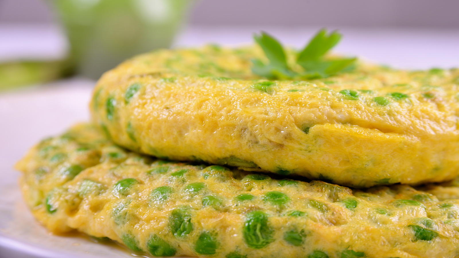 En primer lugar, batimos los huevos. Incorporamos los espárragos en rodajas, los guisantes y salpimentamos.