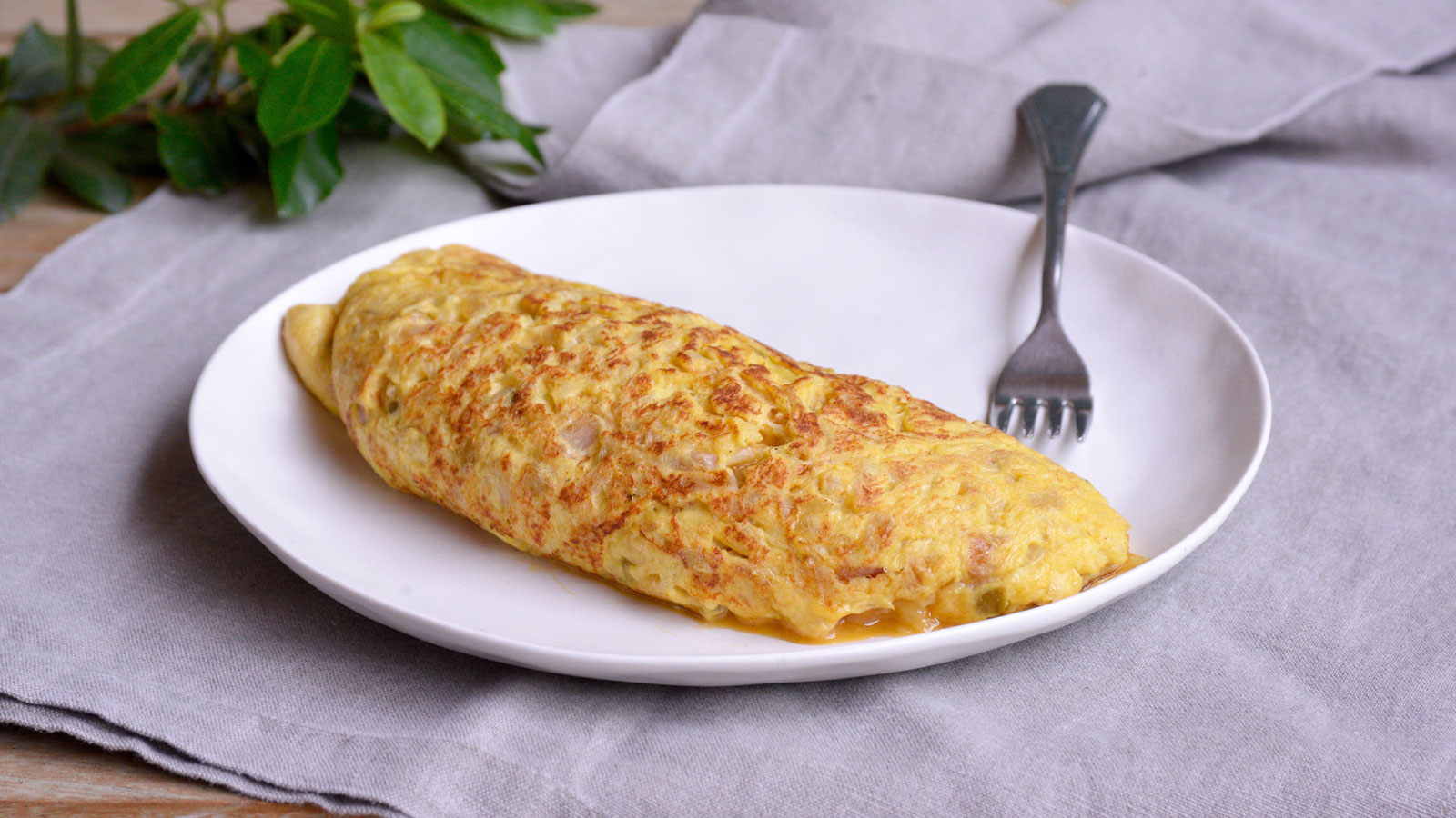 Cuajamos en una sartén caliente la mezcla por ambos lados. Podemos servirla de la manera tradicional o enrollada en dos.