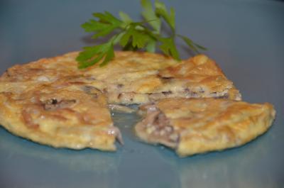 damos la vuelta a la tortilla ayudándonos de una platillo y dejamos que cuaje un minuto más. (Este tiempo dependerá de cómo nos guste de cuajada la tortilla, el que la quiera más cuajada….. pues más tiempo, pero, cuidado, no se nos vaya a quemar).