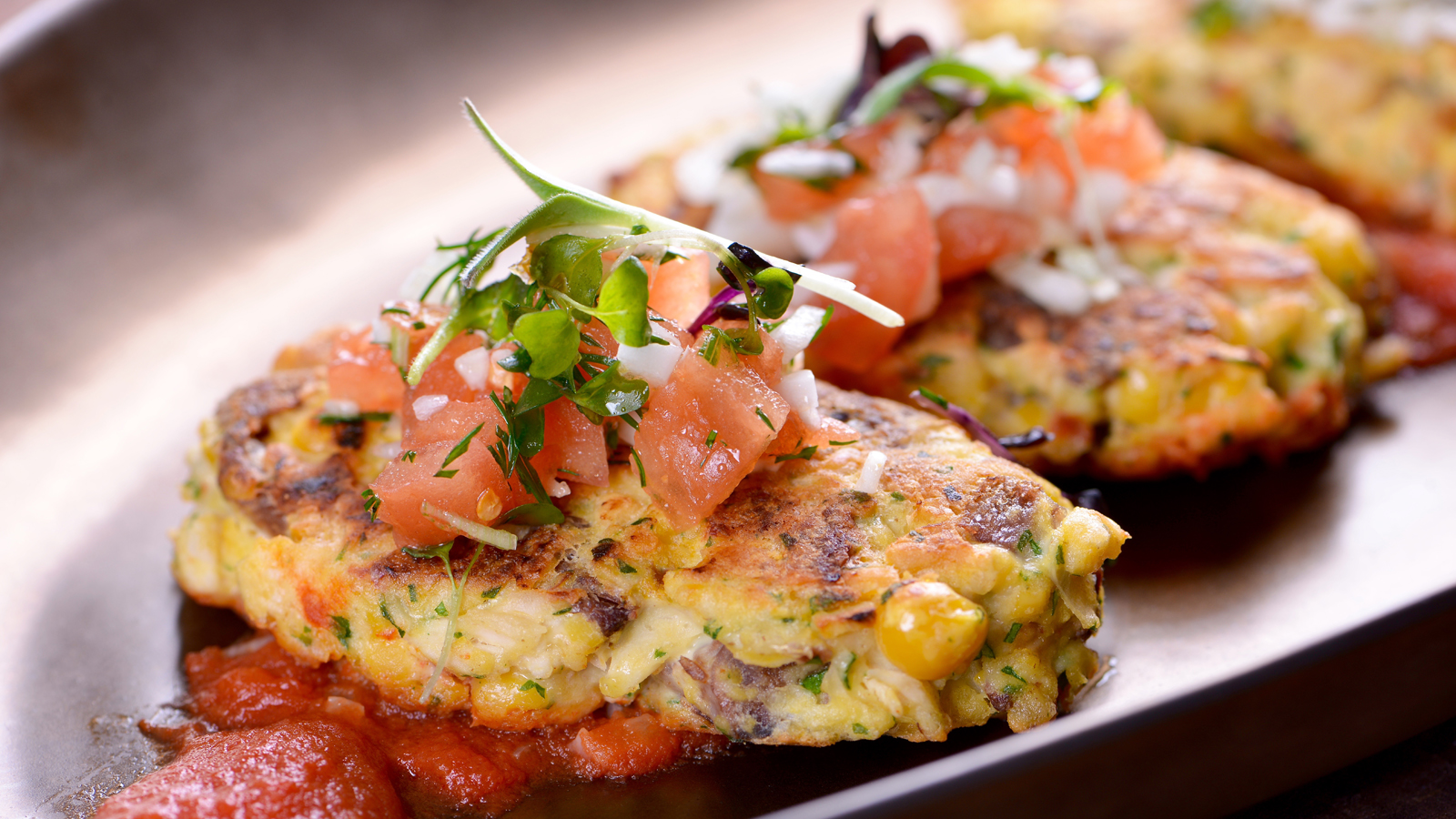 Servimos las tortillas con la salsa de tomate y la picada.