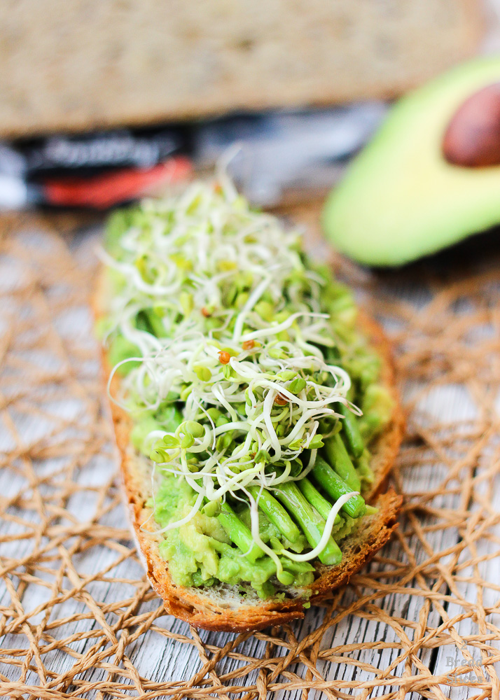 Sobre el aguacate, colocamos los espárragos y los brotes, que previamente habremos lavado y escurrido.