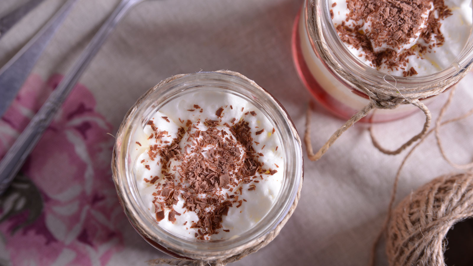 Con ayuda de una manga pastelera cubrimos toda la superficie de la copa. Decoramos espolvoreando con un poco de chocolate rallado.