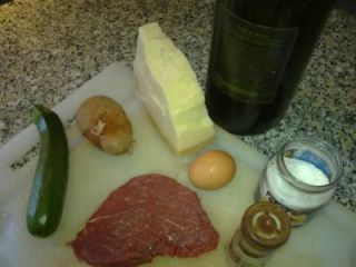 Trocitos de tenera en corteza de patatas salteados con calabacin crujentes y queso parmesano: una receta muy rapida