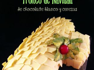 Tronco de navidad de chocolate blanco y cerezas al maraschino