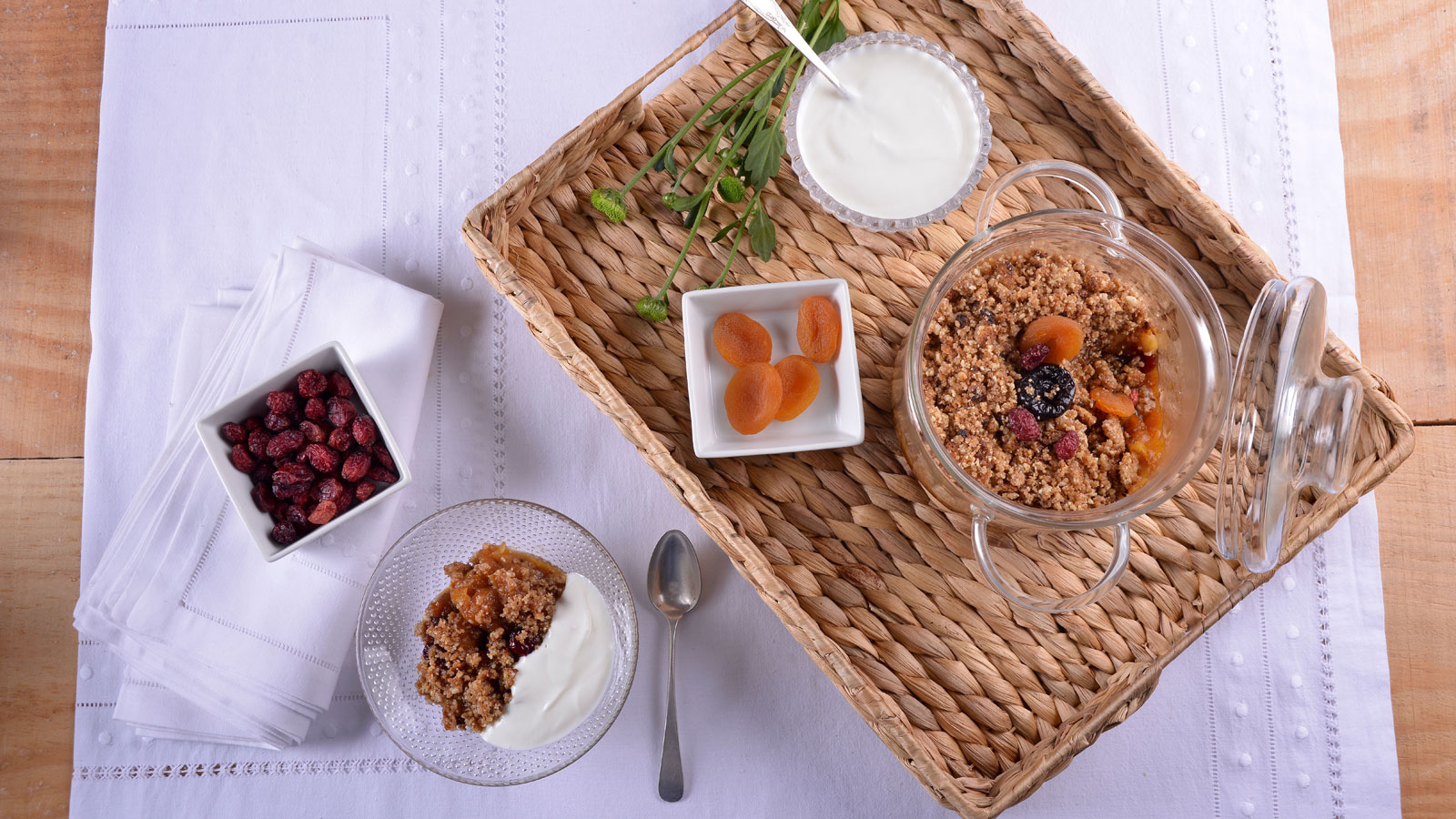 Elena Aymerich en el capítulo 6 del Cocina de familia, prepara este postre a base de frutas como manzana, pera, orejones, arándanos y ciruelas pasas.