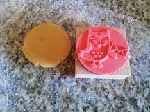 Cortaremos rodajas de unos 3 cm de grosor. Formaremos con cada rodaja primero una bola, la aplanamos dejando un grosor de unos 4mm, colocamos el sello encima y ejercemos una pequeña presión para marcarlo.