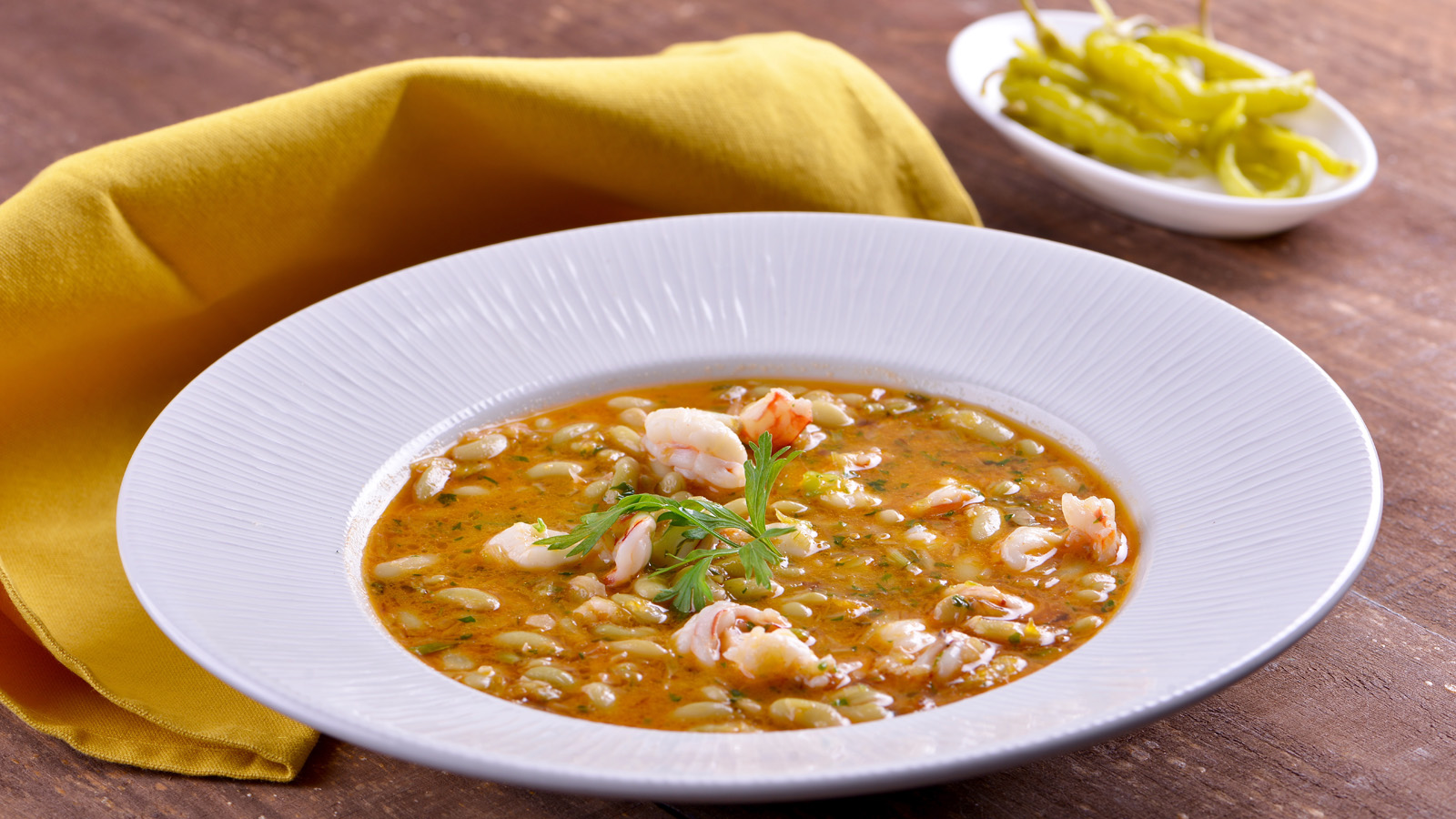 Verdinas con langostinos